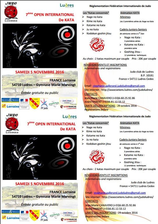 Renseignements et réservations sur le site du Judo Club de Ludres