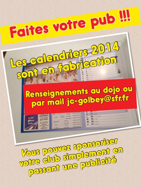 Les calendriers du judo club de golbey sont en cours de fabrication, nous sommes à la recherche de sponsors pour l'année 2014, alors n'hesitez pas à nous rejoindre....