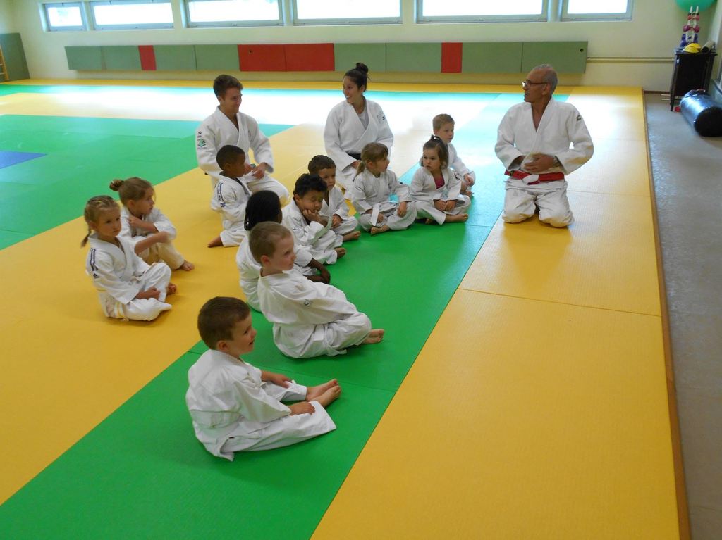 Après quelques explications sur la vie du club et les différentes consignes aux enfants comme aux parents, échauffements, apprentissage des chutes et jeux se sont succédés. Même le plus réticent d'entre eux est devenu très ami avec Bernard. Décidément il sait y faire avec les enfants!