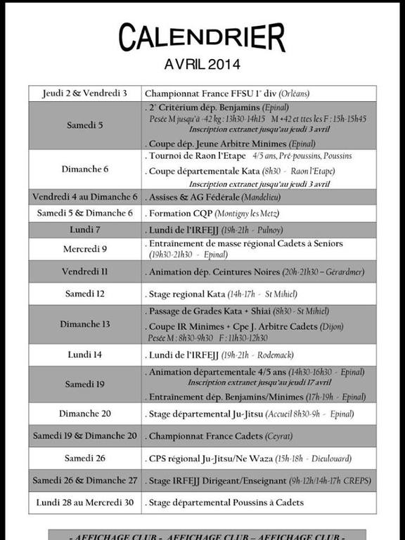 Calendrier Avril 2014