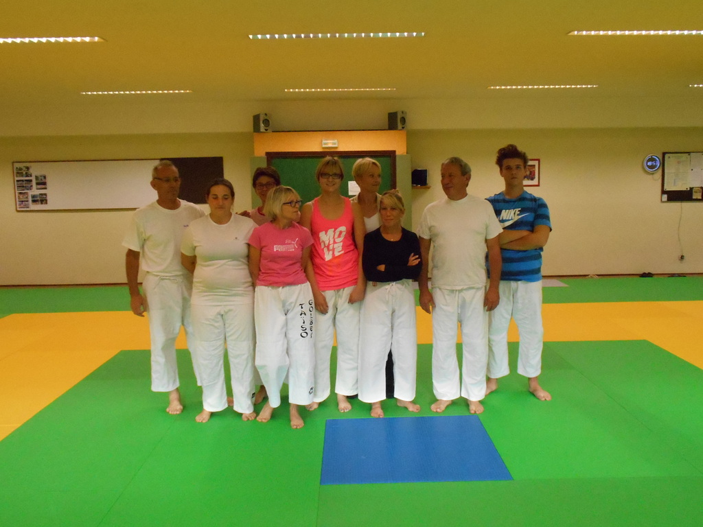Sept participants (eh oui, la huitième étant actuellement blessée), sont venus tester cette nouvelle activité proposée au sein du club en remplacement du Taïso.
