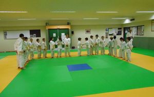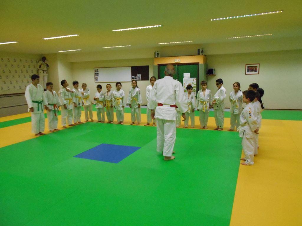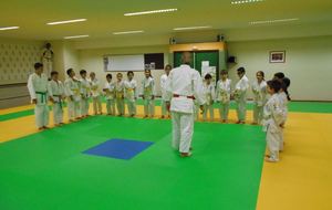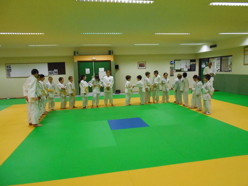 A la fin du cours, Bernard lui a remis une nouvelle ceinture, blanche avec 2 liserets jaunes.