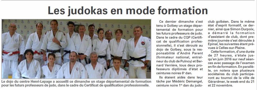 Article paru le 12 novembre dans Vosges Matin suite au stage CQP qui s'est déroulé le dimanche précédent dans nos locaux Golbéens.