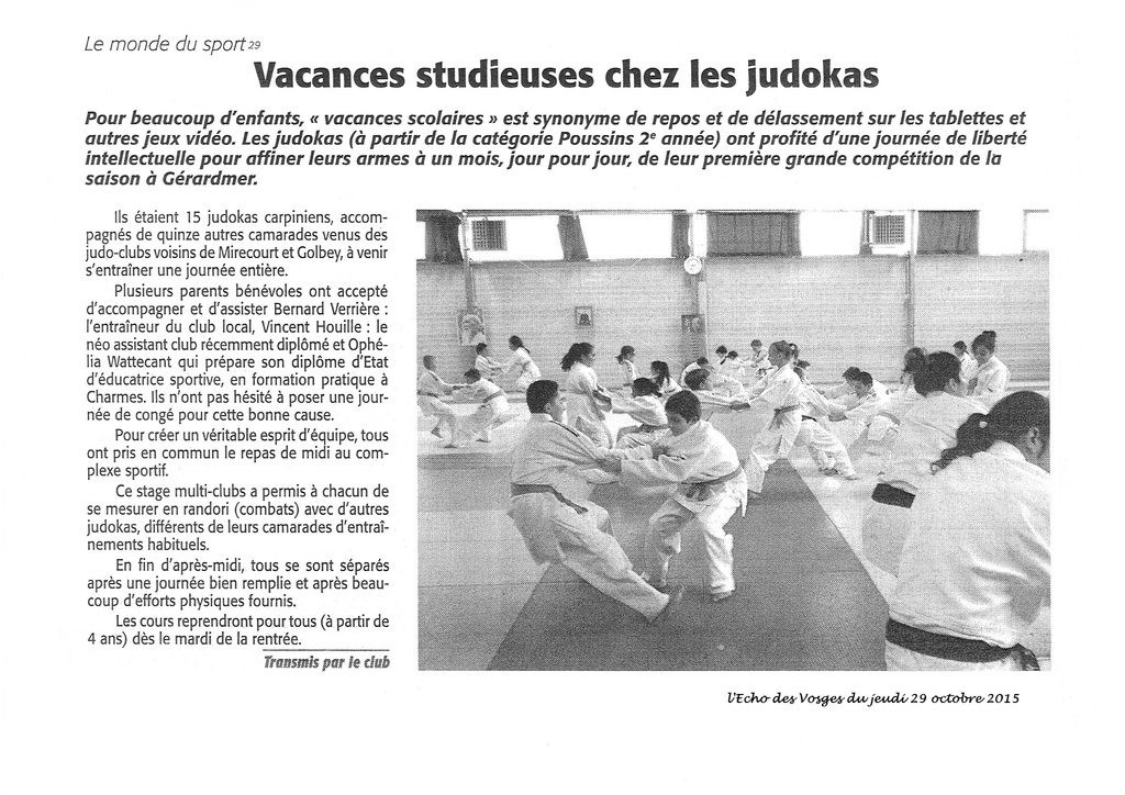 Article paru dans l'echo des Vosges le 29 octobre suite au stage de la Toussaint