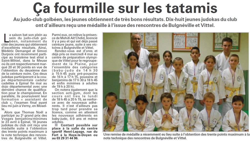 Article paru dans Vosges Matin ce lundi 2 mai suite aux derniers résultats et aux différents évènements de la vie de notre club