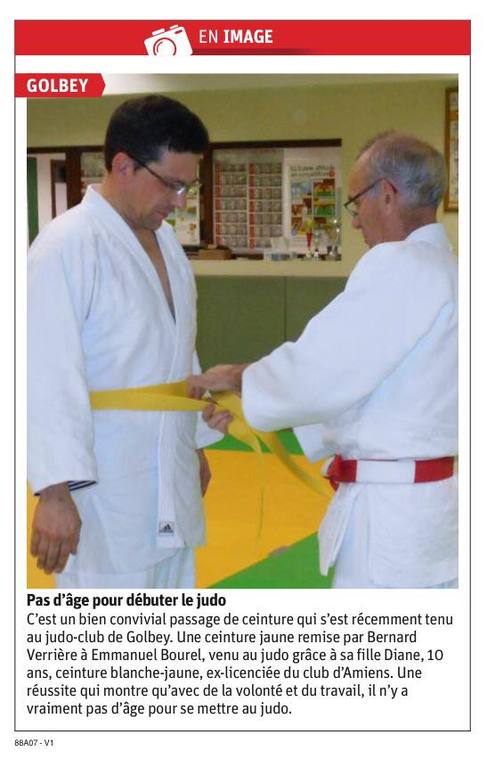 Une mention particulière pour Emmanuel dans Vosges Matin suite à sa remise de ceinture jaune.