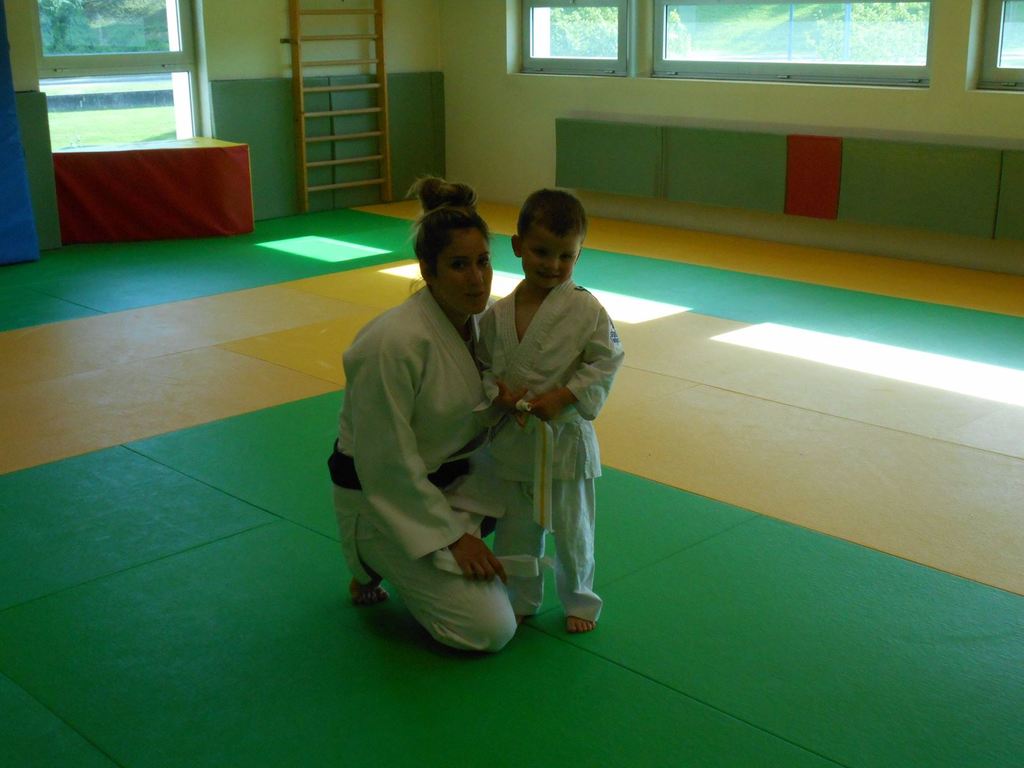 Notre deuxième plus jeune judoka a eu la surprise, suivie d'une très grande fierté, de se voir remettre une nouvelle ceinture, blanche avec un liseré jaune, par sa maman arrivée plus tôt pour cette occasion.